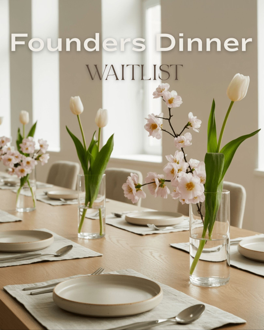 The Founders Dinner Series is a curated gathering of female founders hosted in my home. Each dinner brings together a small group of women who are building meaningful businesses and want to connect beyond surface-level networking. Guided byĀ theĀ signature Founders Dinner questions, these evenings are designed to spark honest conversation, authentic connection, and mutual support.
